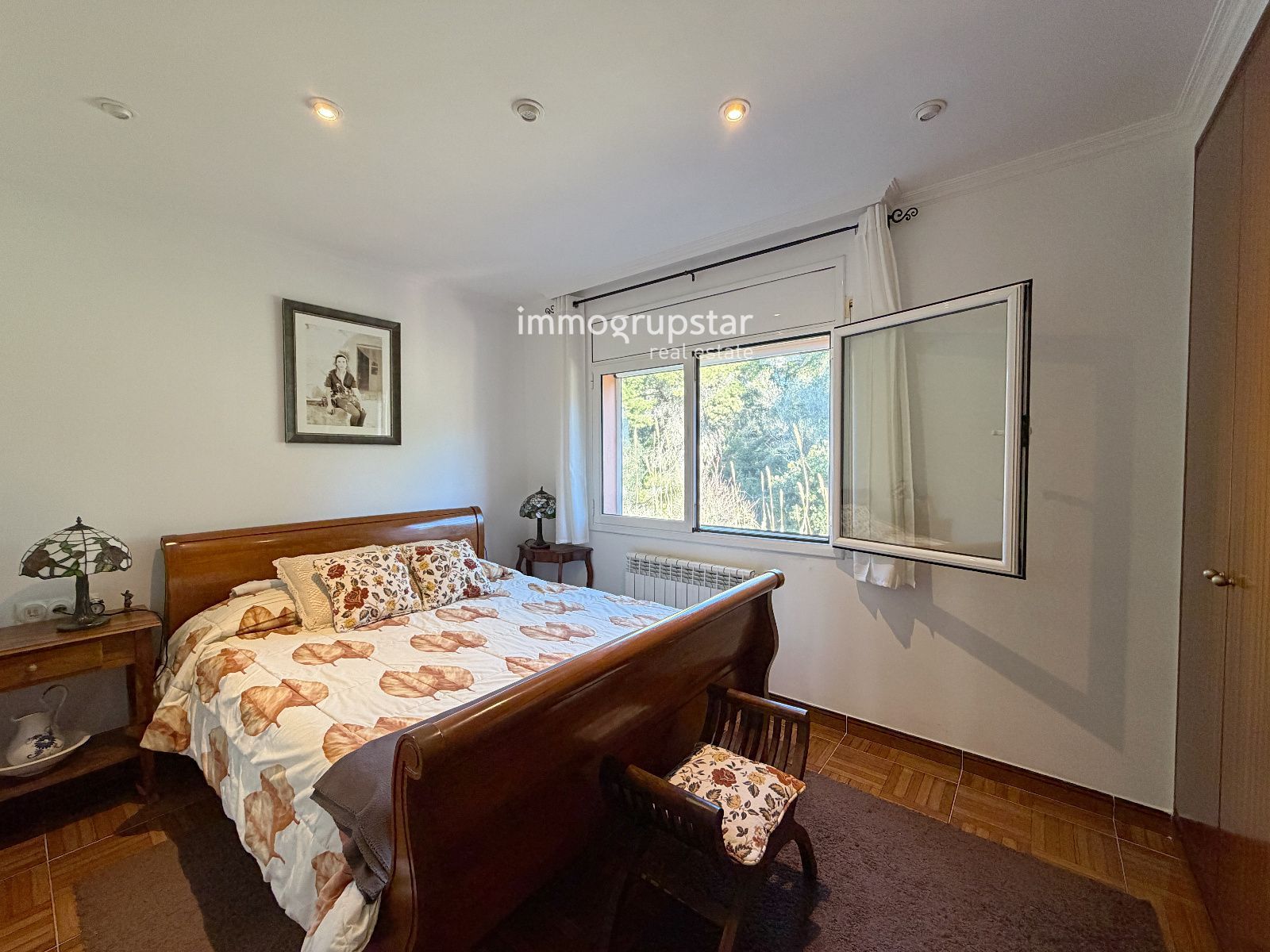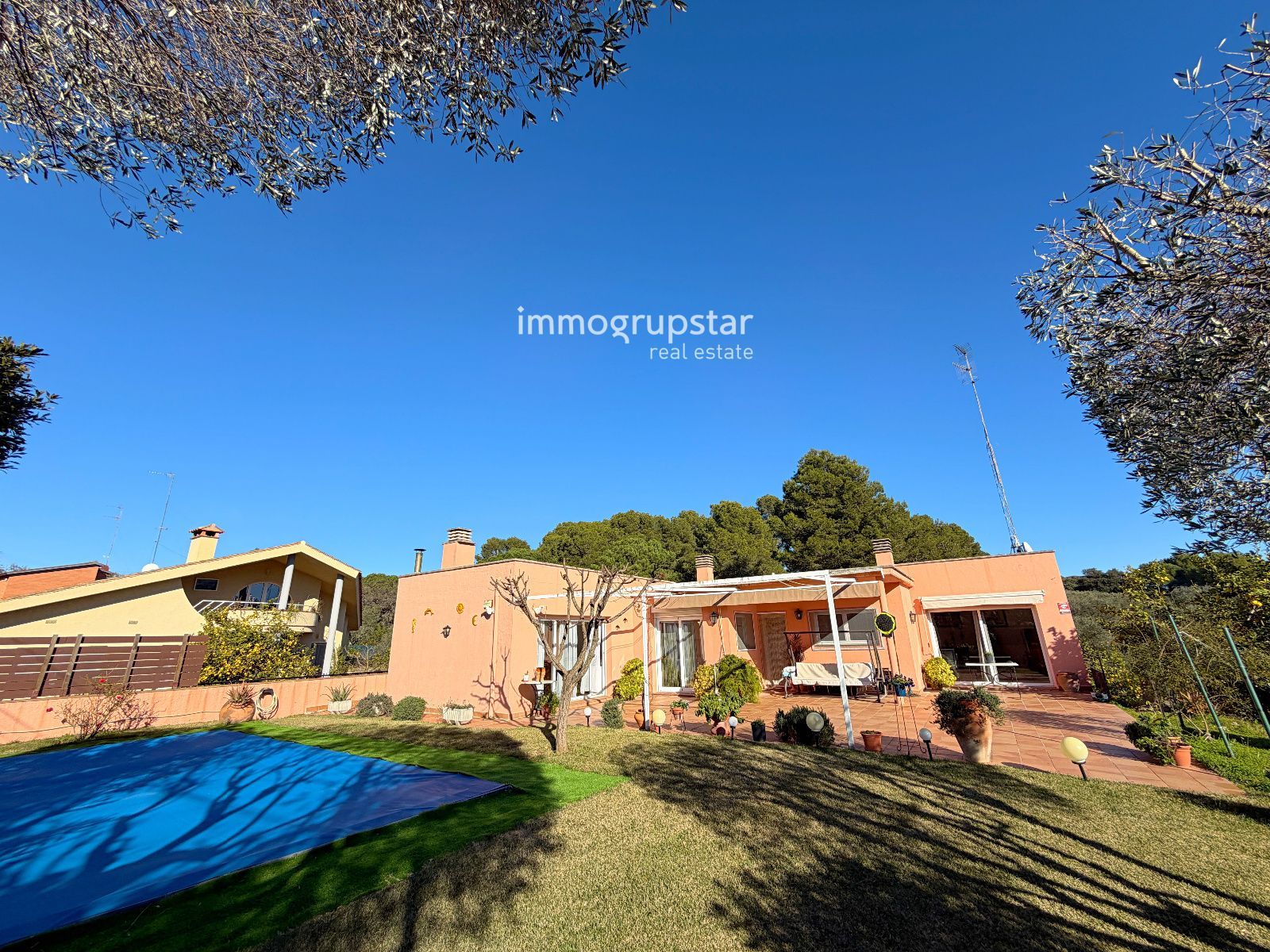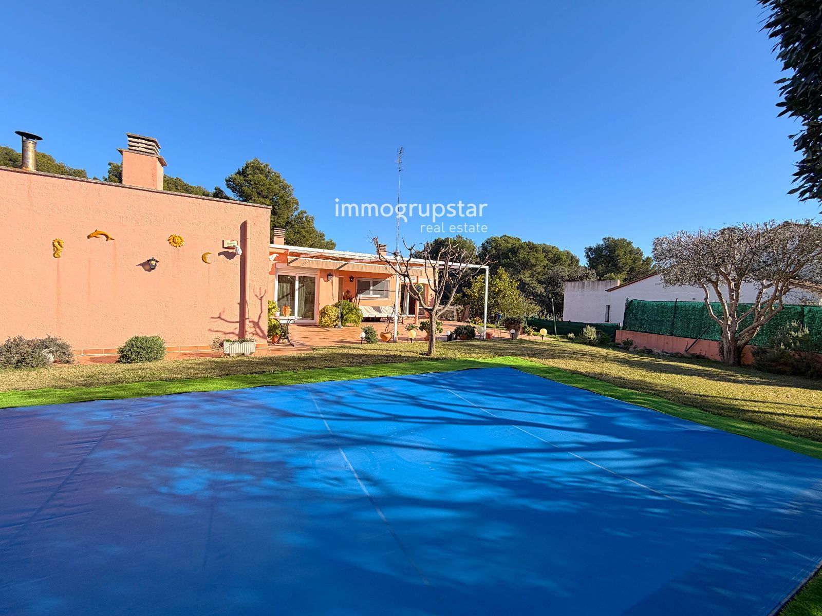 L’exterior ofereix un alt nivell d’intimitat gràcies al seu tancament de fusta i pedra, un ampli jardí perfectament cuidat i una piscina privada que convida a gaudir de l’aire lliure durant tot l’any.