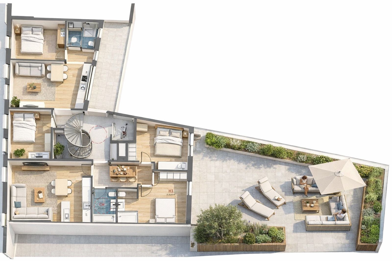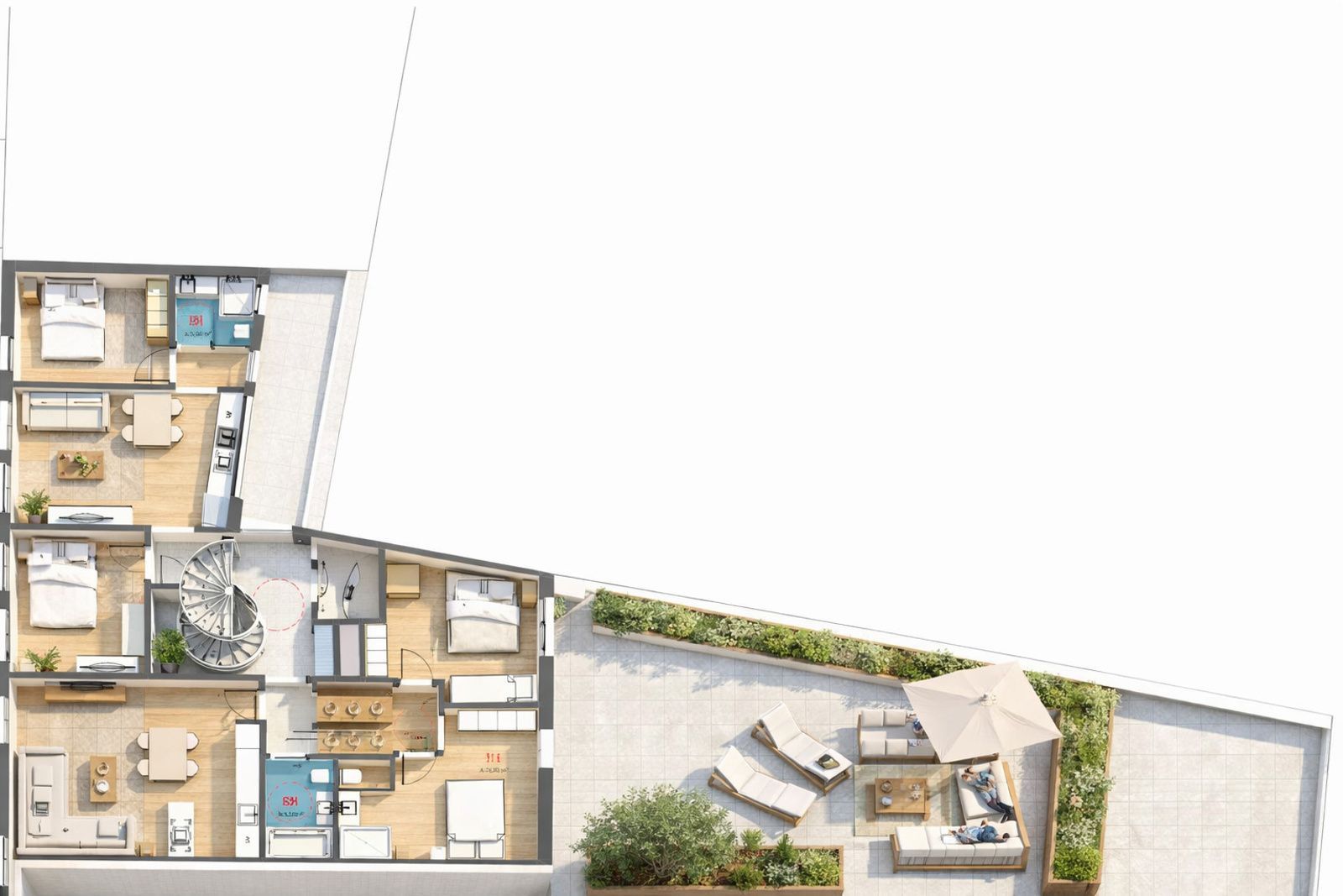 1º 2ª – 2 dormitorios, 2 baños, 70 m² construidos + 113 m² de terraza – 400.000€