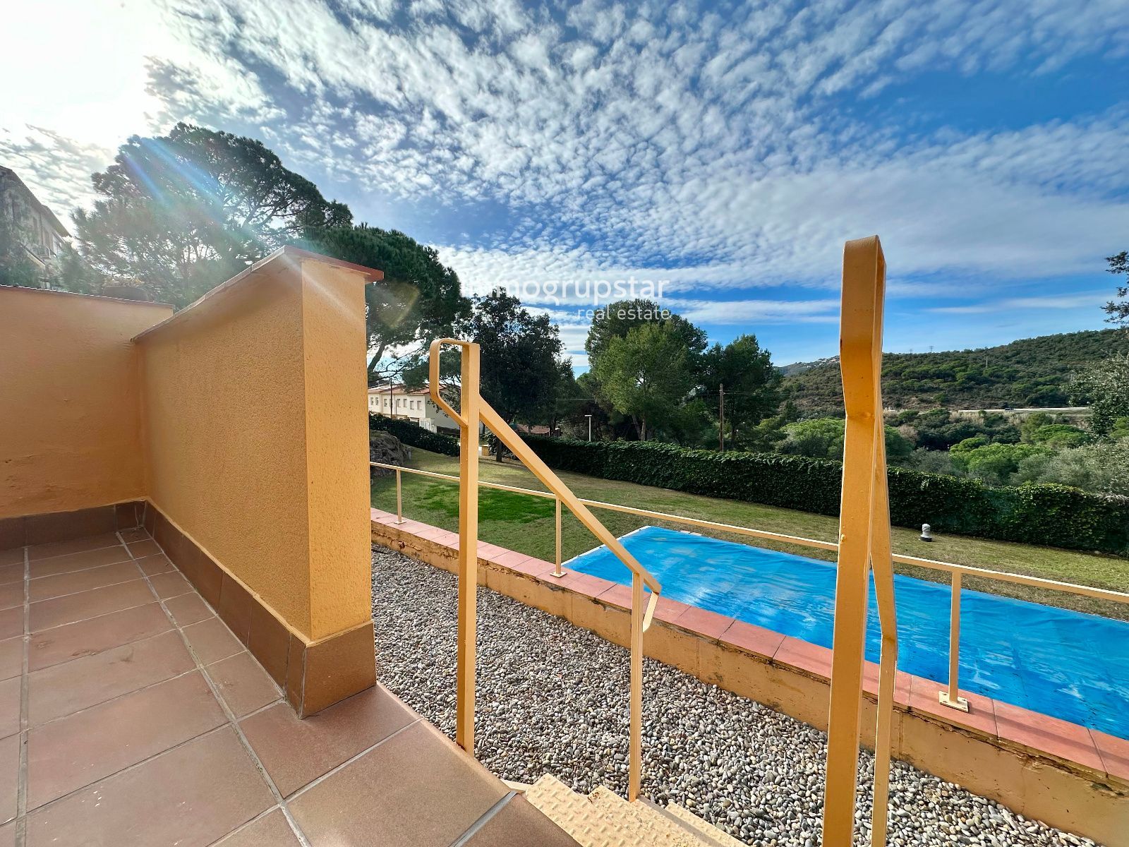The two spacious terraces are ideal for enjoying the sun and the views, while the communal swimming pool invites you to cool off on hot days. The built-in wardrobes offer efficient storage. Built in 2005 and in good condition, this semi-detached house faces west, ensuring natural light throughout the day. It includes a parking space with plenty of storage space and a car!