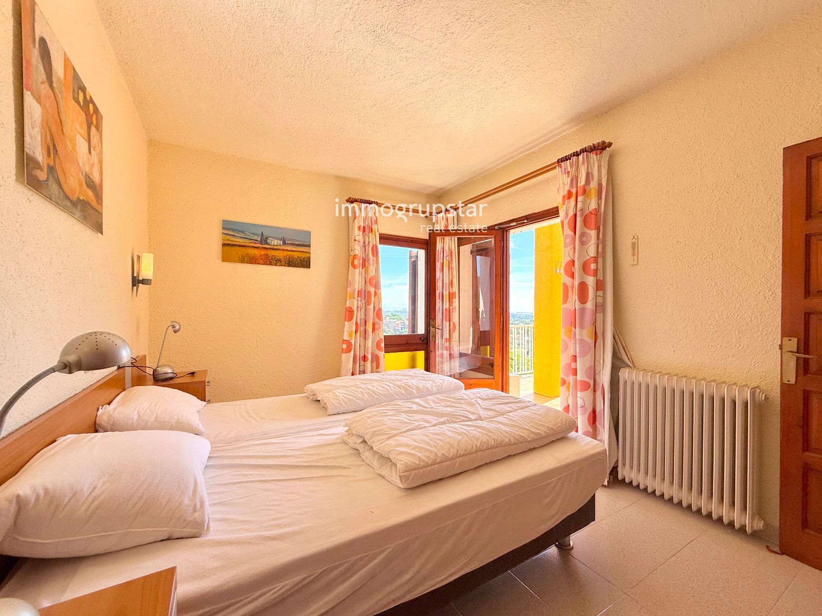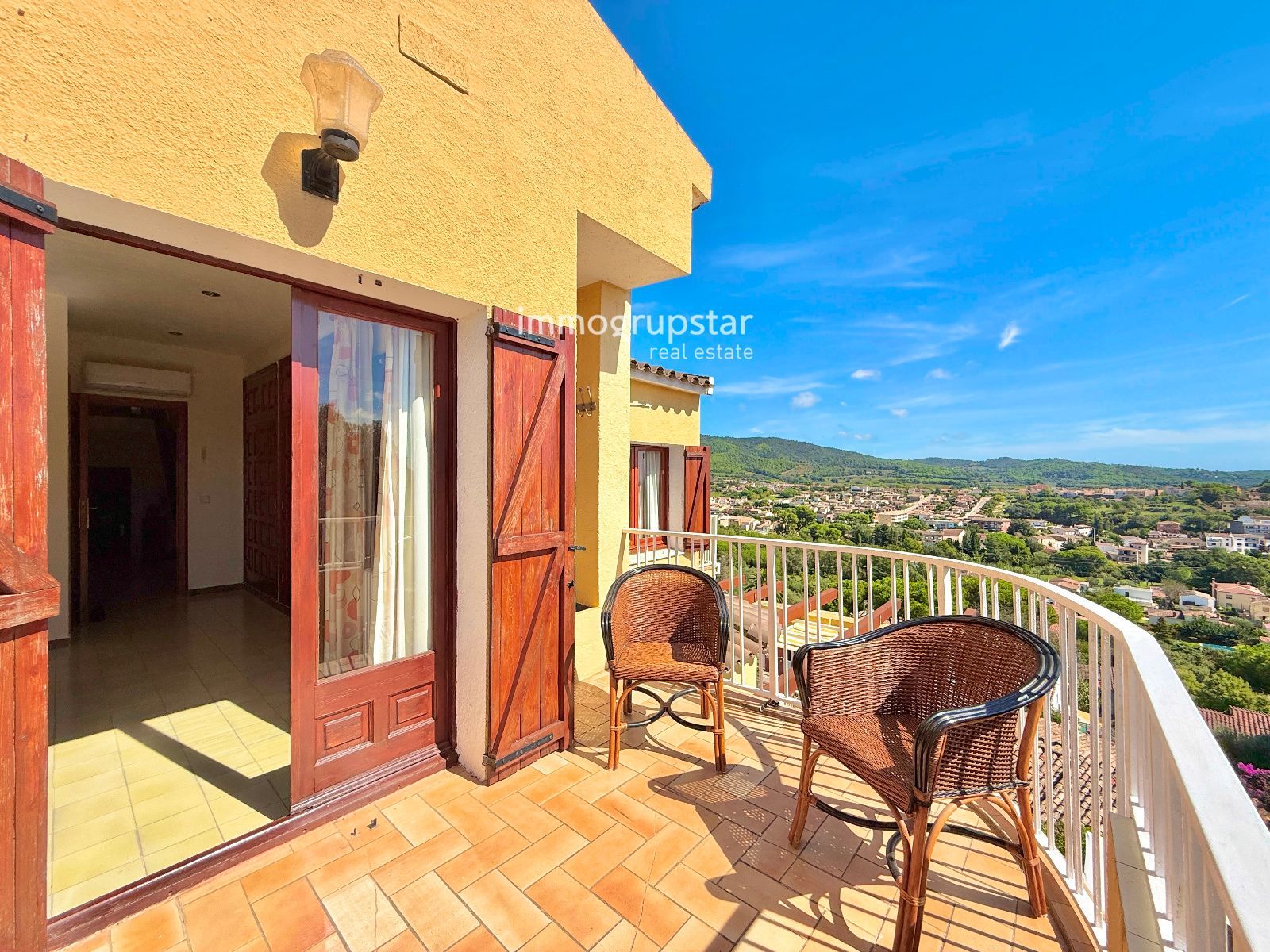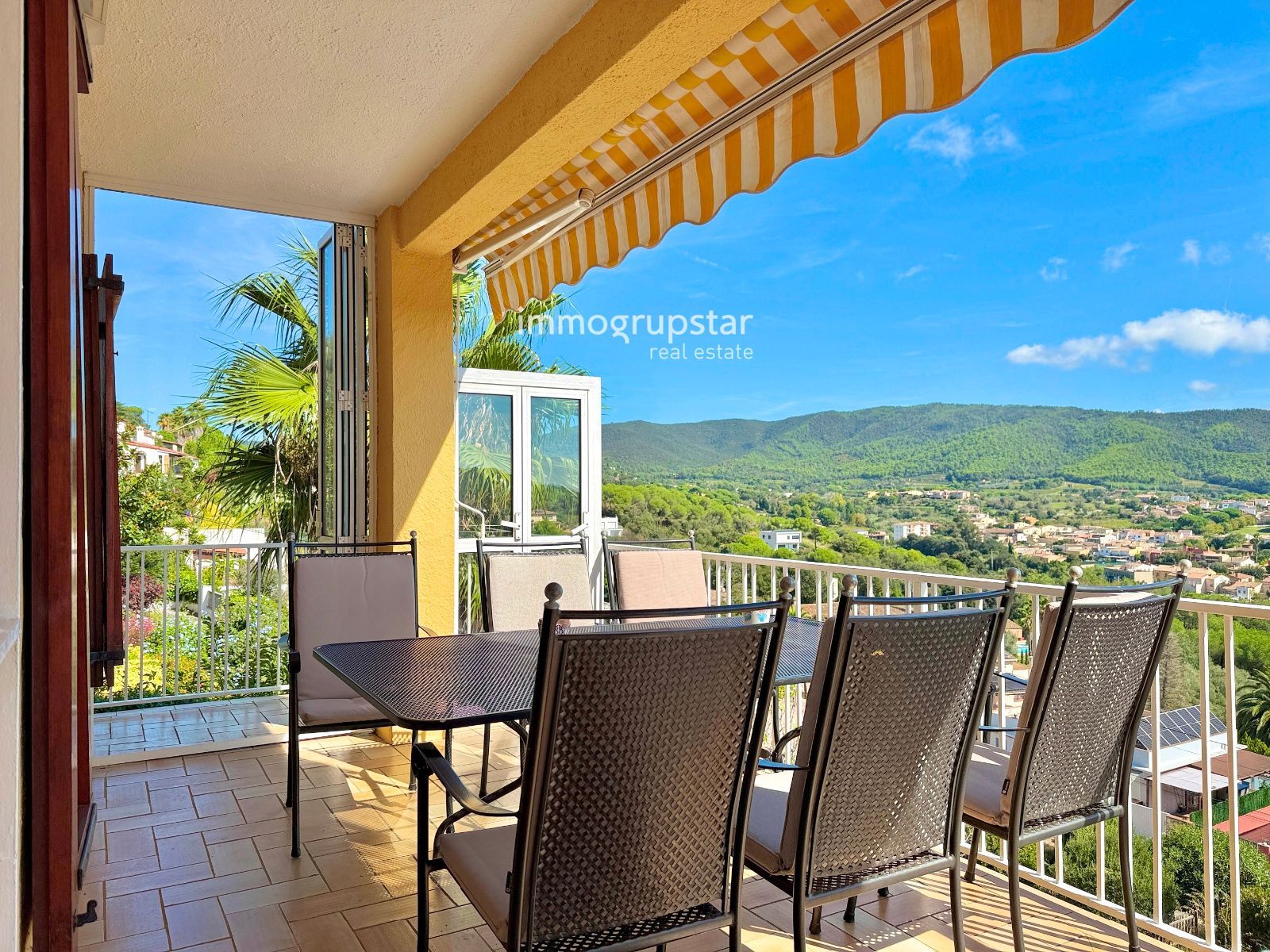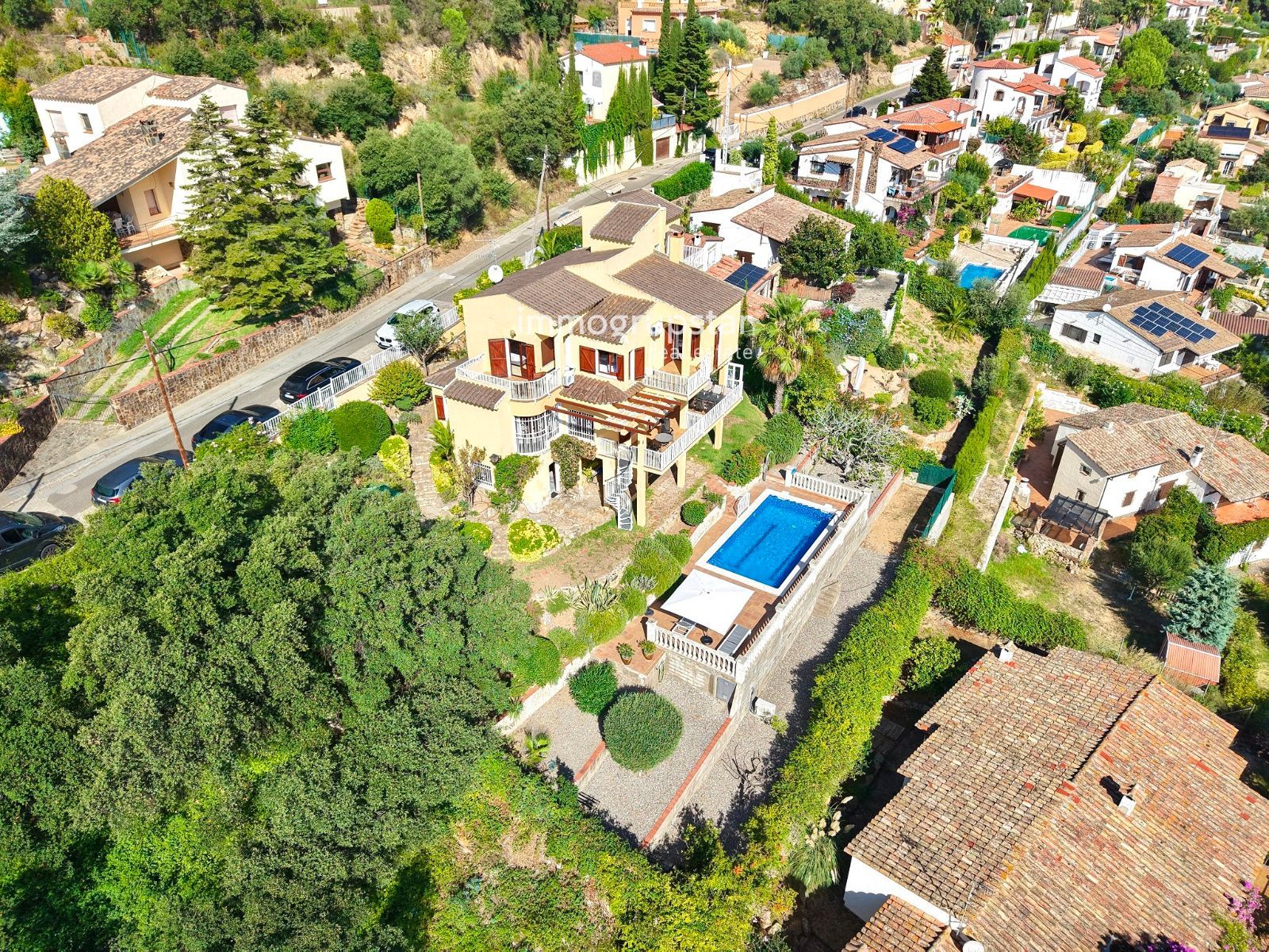 EXCLUSIVA APIALIA COSTA BRAVA. A solo 1,5 km del centro de Calonge, en la urbanización Mas Ambros, se encuentra esta encantadora villa con impresionantes vistas al pueblo, a las montañas y un vistazo al mar. La vivienda disfruta de una ubicación tranquila en una calle sin salida, mientras que todos los servicios del pueblo están a poca distancia.