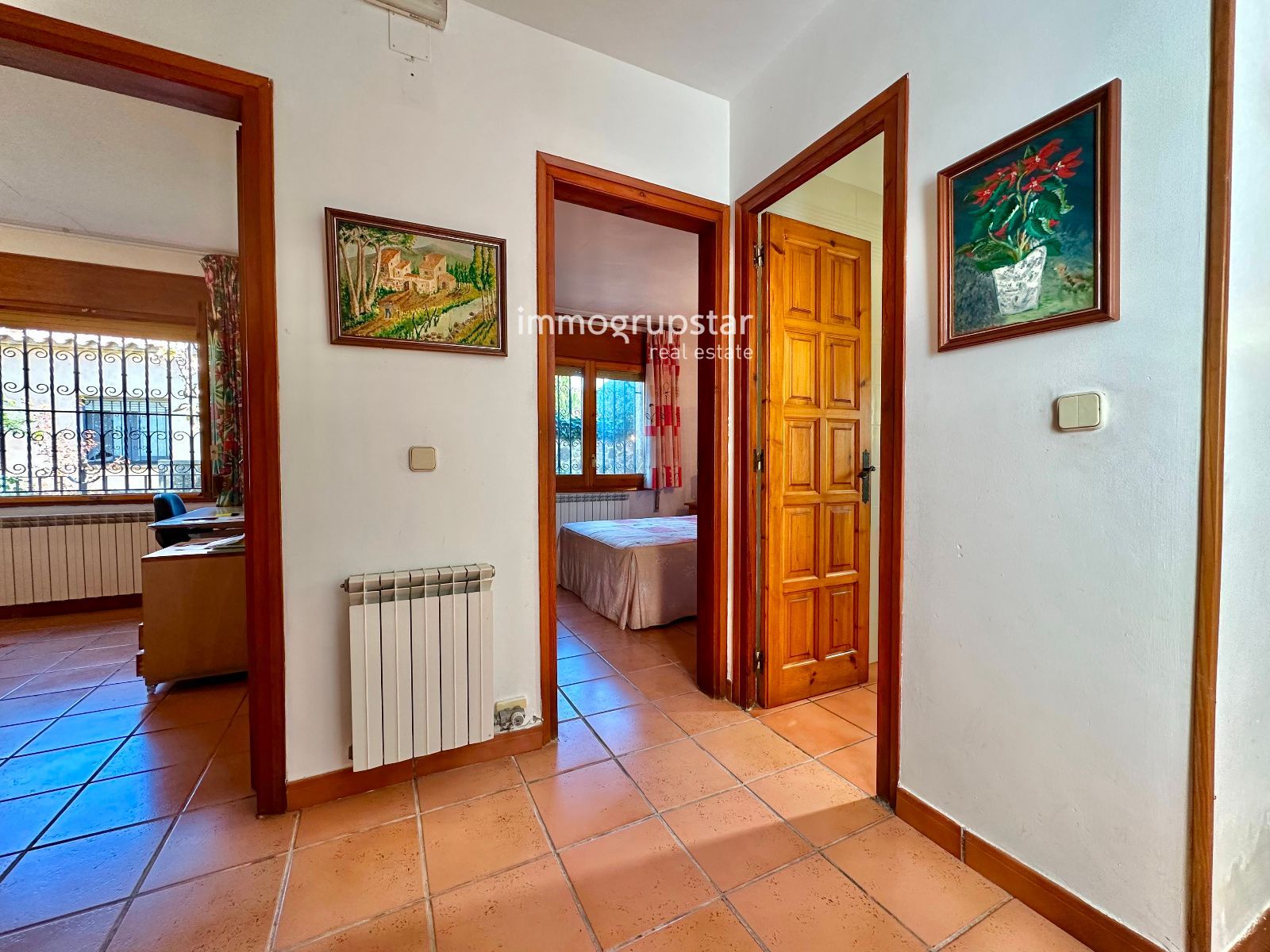 Construida con encanto rústico y materiales tradicionales, la villa ofrece espacios amplios, luminosos y confortables, con una orientación que permite aprovechar al máximo la luz natural y disfrutar de vistas panorámicas al entorno.