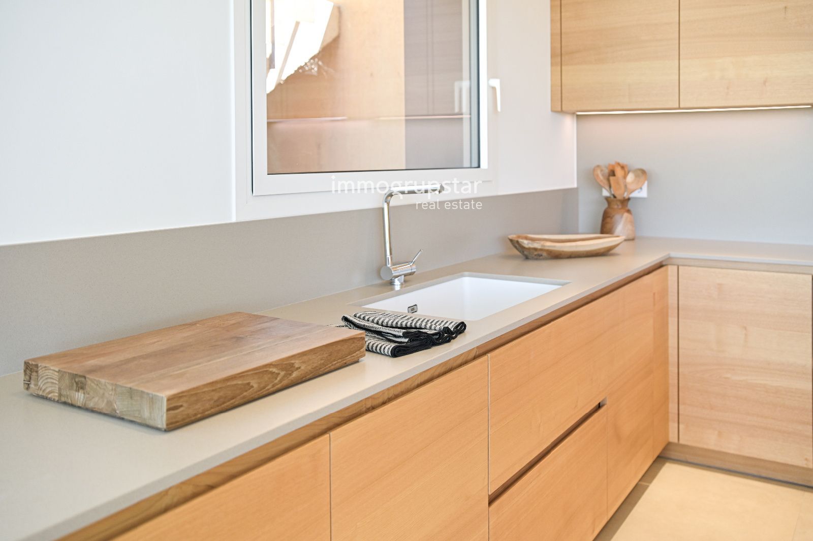 Кухня - воплощение мечты шеф-повара, оборудованная столешницей Silestone и техникой Siemens или аналогичного качества. Кондиционирование воздуха гарантируется современным тепловым насосом и аэротермальной системой, обеспечивая максимальный комфорт круглый год.