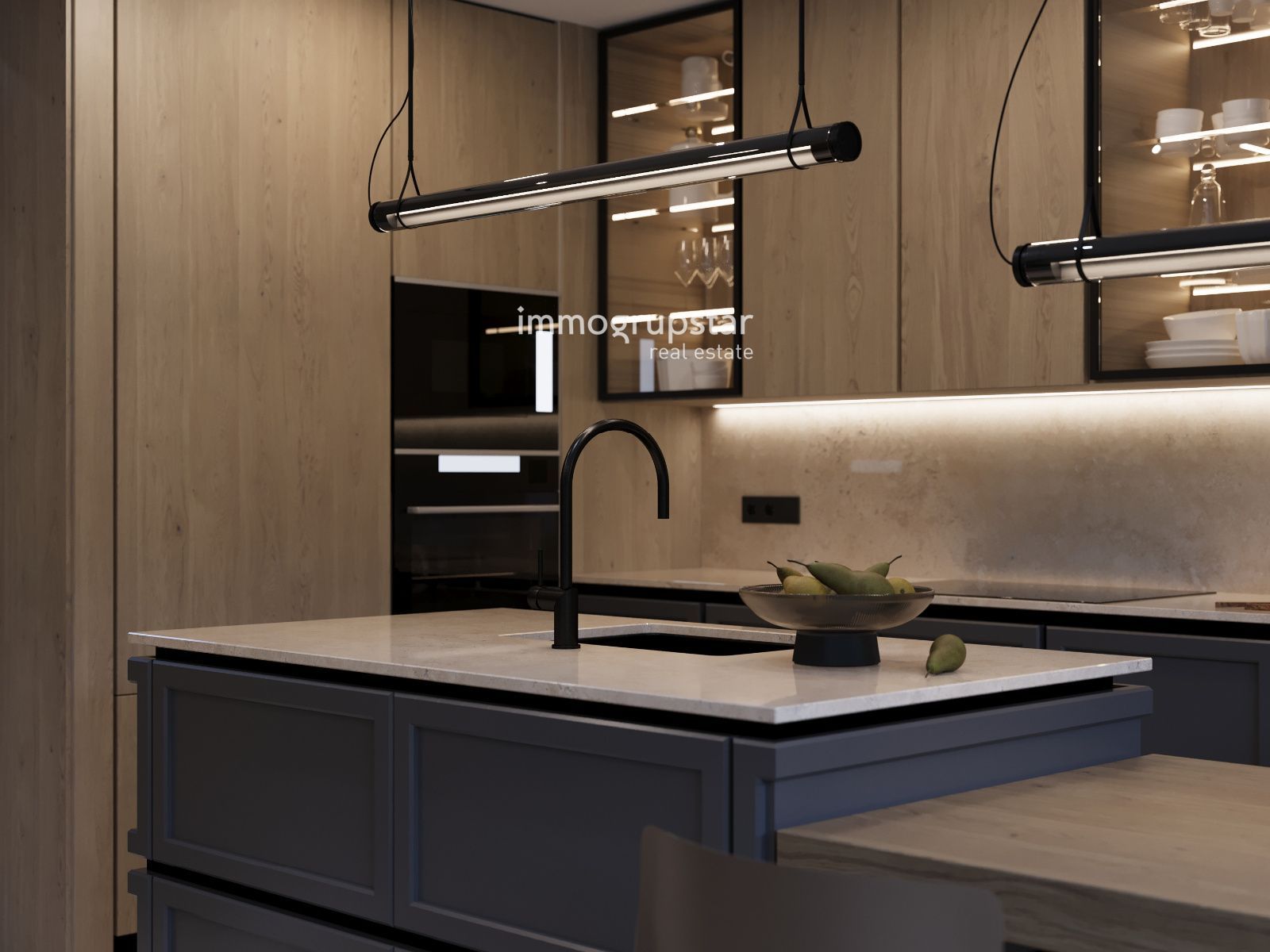 Функциональная планировка включает 4 уютные спальни и 3 ванные комнаты, просторные гостиные, соединённые с частными террасами и зелёными внутренними дворами, а также итальянские кухни дизайнерской марки Snaidero, отличающиеся элегантностью и функциональностью.